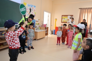 Dans le cadre de la Semaine de la Circulation et des Premiers Secours, une importante formation sur la sécurité routière a été organisée à la Halte-Garderie Es Çocuk Evi. Des experts en police de la circulation issus du Centre de Formation à la Circulation Routière ont participé à la formation. Une formation interactive a été dispensée aux plus petits sur les règles à respecter dans la circulation et sur la manière dont les piétons et les conducteurs doivent se comporter.