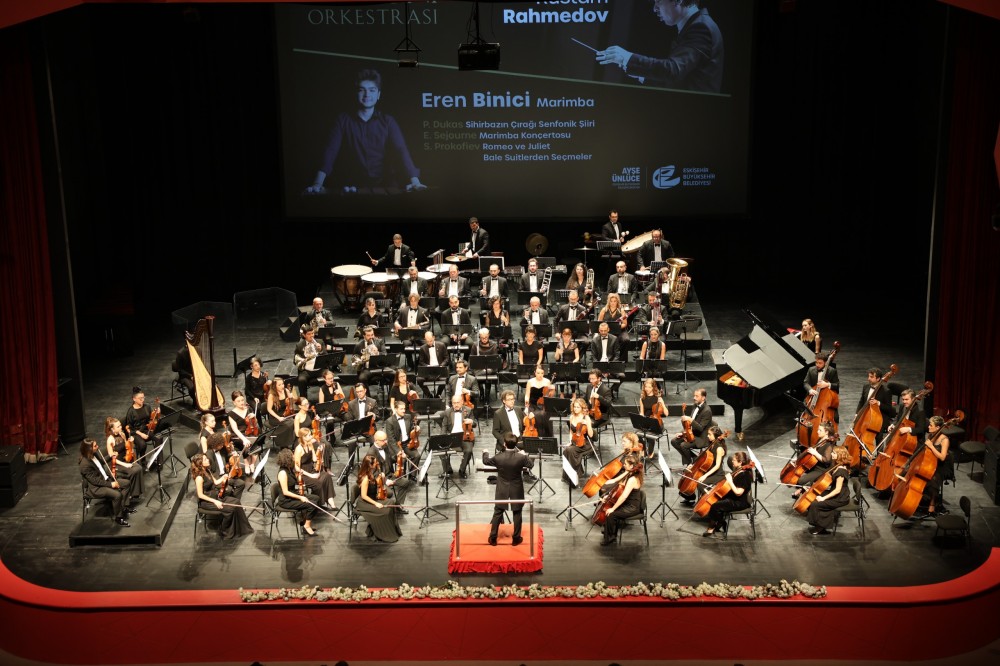 Eskişehir Büyükşehir Belediyesi Senfoni Orkestrası bu hafta orkestra şefi Rustam Rahmedov yönetiminde, perküsyon sanatçısı Eren Binici solistliğinde unutulmaz bir konsere daha imza attı. Sanatseverlerin yoğun ilgi gösterdiği konserde orkestranın ve Binici’nin performansı büyük beğeni topladı.