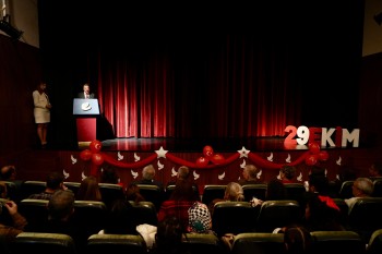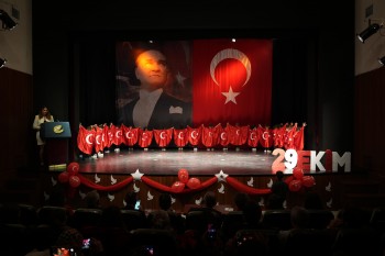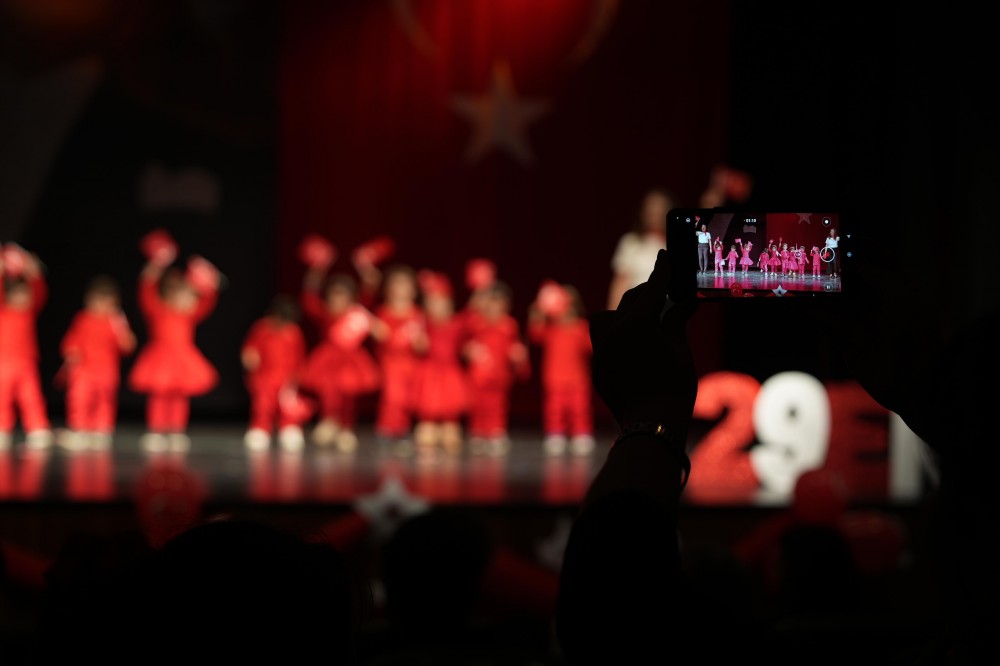 Cumhuriyet Bayramı’nın coşkusunu doyasıya yaşayan minikler, bayram kutlamasının sonunda ise ay yıldız simgeli 102. yıl pastasını hep birlikte kestiler. Büyükşehir Belediyesi bürokratları, öğretmenler ve ebeveynlerin de katıldığı kutlamada minikler marşlar söyleyerek gösteriyi tamamladılar.