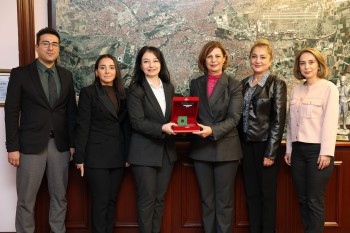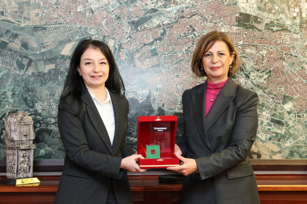 Başkan Ünlüce adına ödülü alan Sıla Senem Bükülmez, daha sonra ödülü Başkan Ünlüce’ye makamında takdim etti.