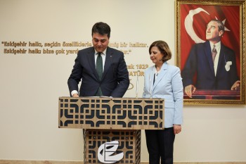 Ziyarette Uysal, Eskişehir’in modern yüzüyle tarihi kimliğini başarıyla buluşturan bir şehir olduğunu belirterek, “Bir taraftan ‘dünya şehri’ kimliğini sürdürmeleri, diğer taraftan da tarihi ve kültürel dokusunu muhafaza eden belediyecilik anlayışları dolayısıyla ve nazik ev sahiplikleri vesilesiyle kendilerine teşekkür ediyoruz.” ifadelerini kullandı.