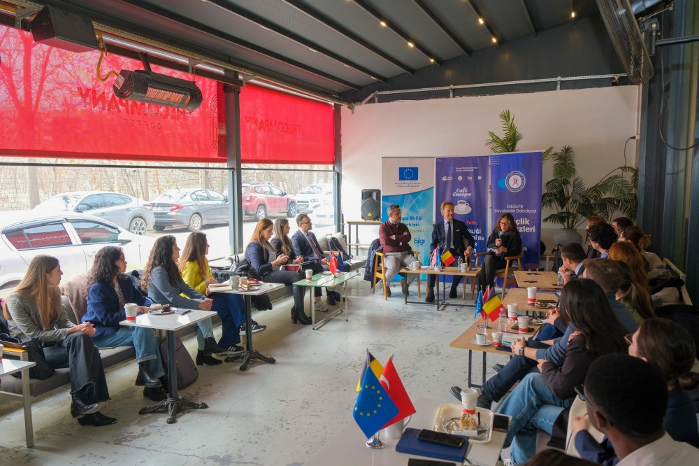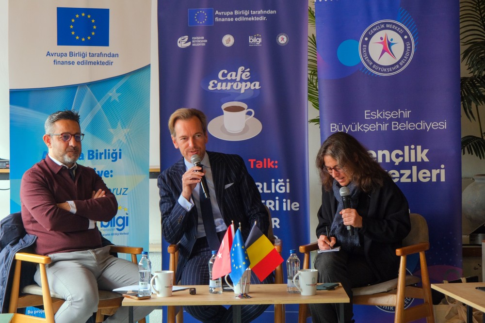 Eskişehir Büyükşehir Belediyesi Gençlik Merkezi ile Eskişehir Ticaret Odası bünyesinde faaliyet gösteren Eskişehir AB Bilgi Merkezi iş birliğinde düzenlenen Café Europa - Coffee & Talk buluşmalarının ilki, gençlerin yoğun katılımıyla gerçekleştirildi. Avrupa Birliği Türkiye Delegasyonu’nun desteğiyle düzenlenen etkinlikte, Belçika’nın Türkiye Büyükelçisi Hendrik Van De Velde Eskişehirli öğrencilerle bir araya geldi.
