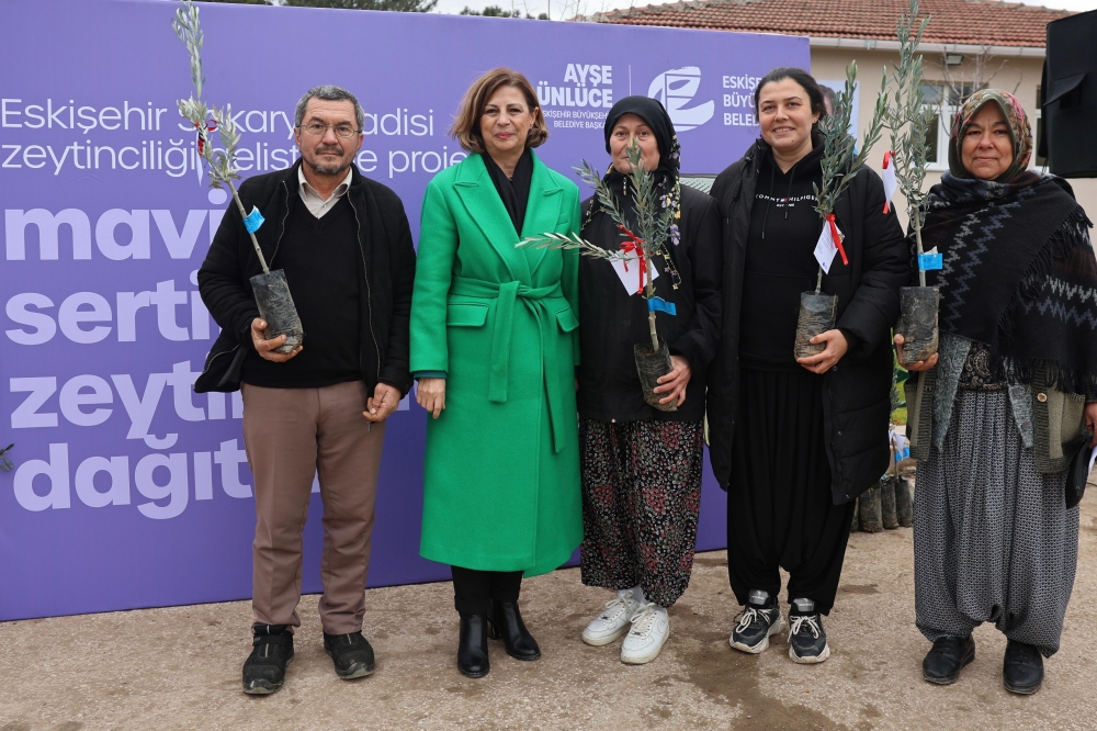 Ziyaretlerin ardından Eskişehir Sakarya Vadisi Zeytinciliği Geliştirme Projesi kapsamında üreticilere dağıtılan mavi sertifikalı zeytin fidan dağıtımı törenine geçen Başkan Ünlüce’ye törende CHP Eskişehir Milletvekili Dr. Jale Nur Süllü, Büyükşehir Belediyesi Genel Sekreter Vekili M. Recai Erdir, ESKİ Genel Müdürü Oğuzhan Özen ve çok sayıda belediye bürokratı eşlik etti.