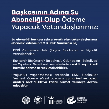 Su aboneliği başkası adına kayıtlı olan vatandaşlarımız, abonelik sahibinin T.C. Kimlik Numarası ile;