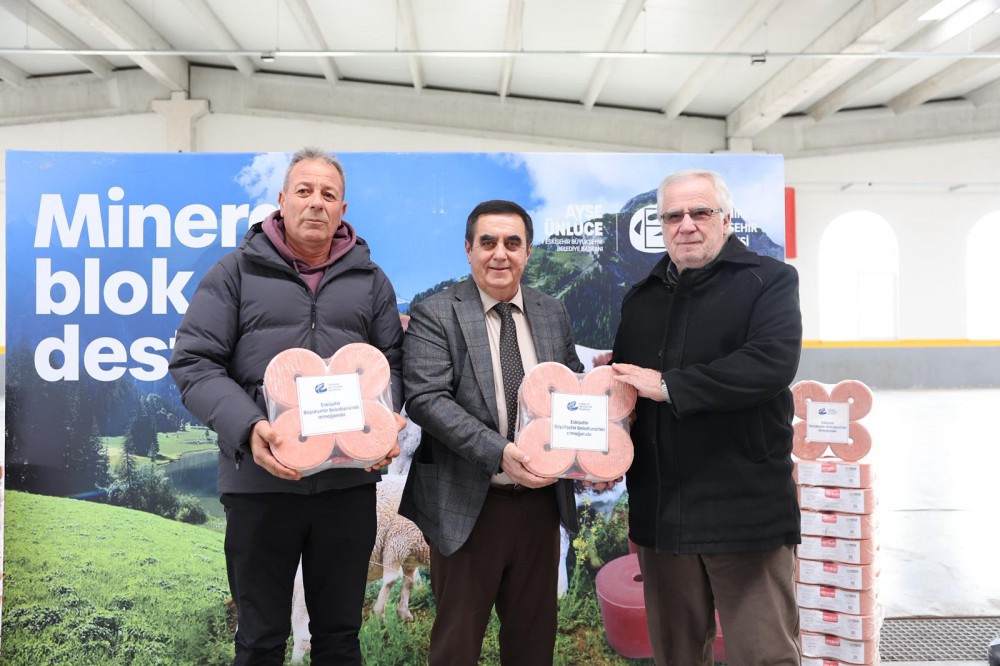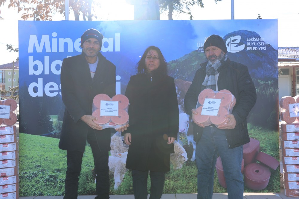 Büyükşehir Belediyesi Tarımsal Hizmetler Dairesi Başkanlığı tarafından Han ve Mahmudiye ilçelerinde büyükbaş ve küçükbaş hayvancılık yapan üreticilere hayvan sağlığının korunması, verimliliğin artırılması ve beslenme kaynaklı mineral eksikliklerinin önlenmesi amacıyla toplam 15 ton mineral blok dağıtıldı.