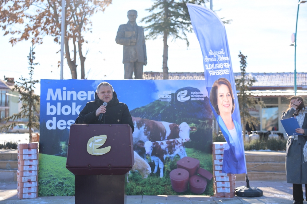 İlk olarak Han’da gerçekleştirilen törende konuşan Büyükşehir Belediyesi Genel Sekreter Yardımcısı Metin Bükülmez, “Eskişehir Büyükşehir Belediyesi olarak kırsal kalkınmayı desteklemeyi ve hayvansal üretimde sürdürülebilirliği güçlendirmeyi önceliğimiz olarak görüyoruz. Bu anlayışla Han ve Mahmudiye ilçelerimizde büyükbaş ve küçükbaş hayvancılık yapan toplam 186 üreticimize 15 ton mineral blok desteği sağlıyoruz. Üreticilerimizin girdi maliyetlerini azaltan, kırsal üretimi güçlendiren desteklerimizi kararlılıkla sürdürmeye devam edeceğiz. Hayırlı, bereketli olsun.” dedi.