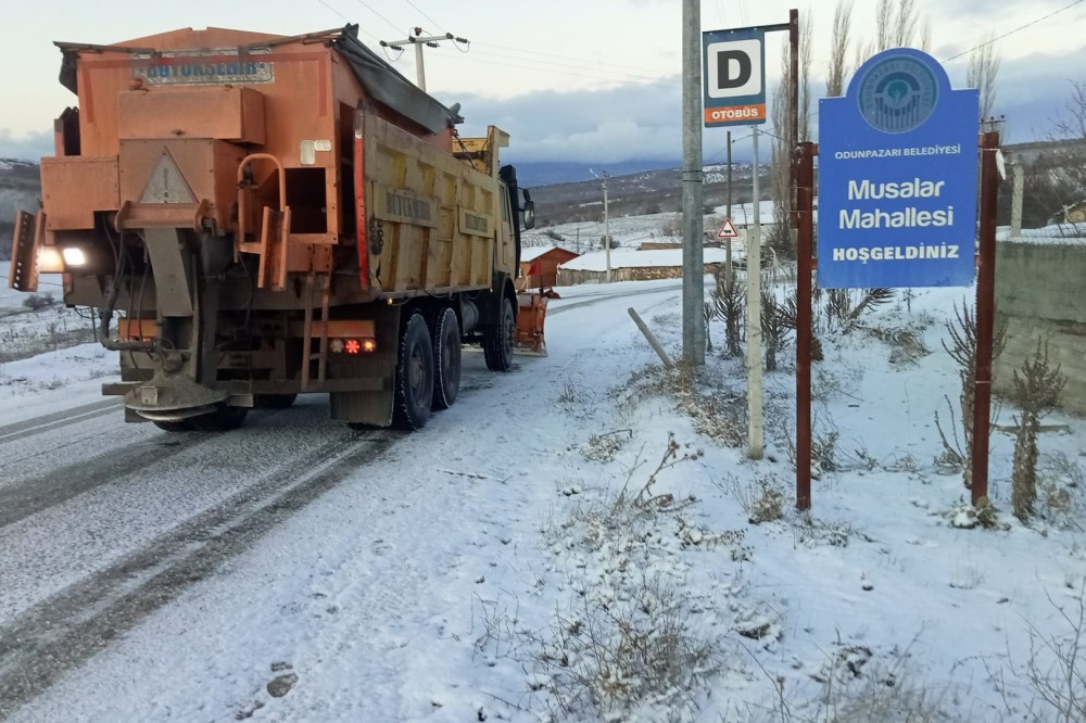 Eskişehir’de etkili olan kar yağışıyla birlikte Büyükşehir Belediyesi ekipleri, ulaşımda aksama yaşanmaması için gece boyunca sahadaydı. Merkezin yanı sıra ekipler Mihalıççık, Alpu, Seyitgazi, İnönü ve Bozdağ’da kar küreme ve tuzlama çalışmalarını gerçekleştirdi.
