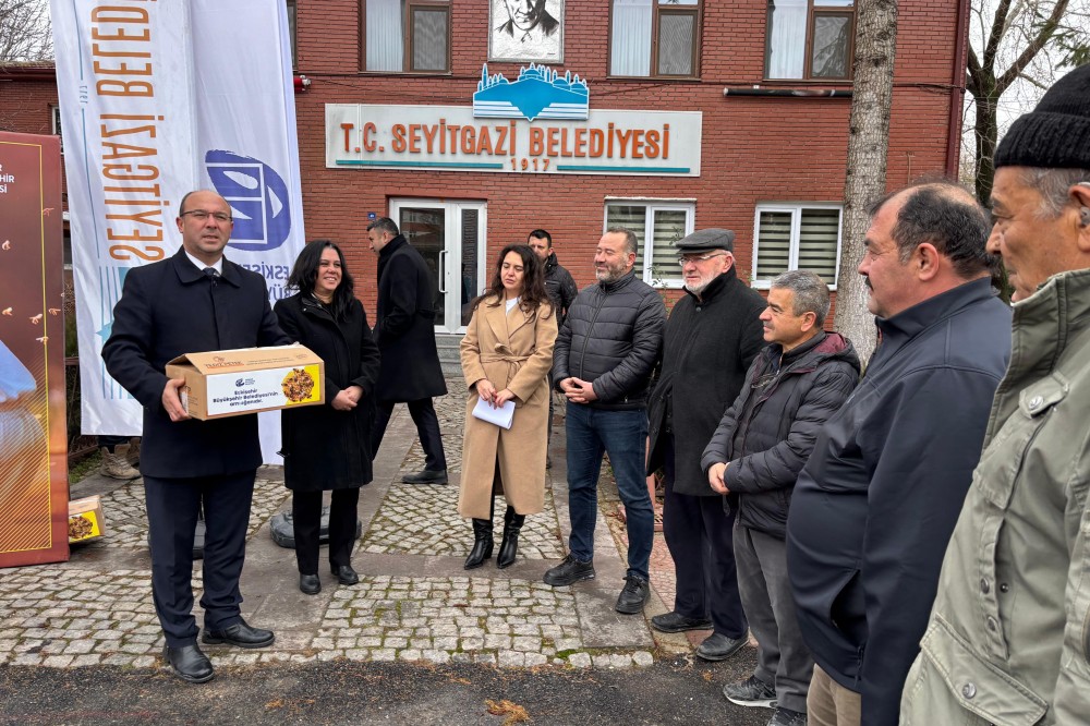 Seyitgazi Belediyesi önünde düzenlenen dağıtım törenine Seyitgazi Belediye Başkanı Uğur Tepe, Büyükşehir Belediyesi Tarımsal Hizmetler Dairesi Başkanı Hale Senem Acar, belediye personeli ve çok sayıda arıcı katılım sağladı. Program kapsamında Seyitgazi ilçesinde faaliyet gösteren 28 üreticiye toplam 300 kilogram fondan arı yemi desteği verildi.