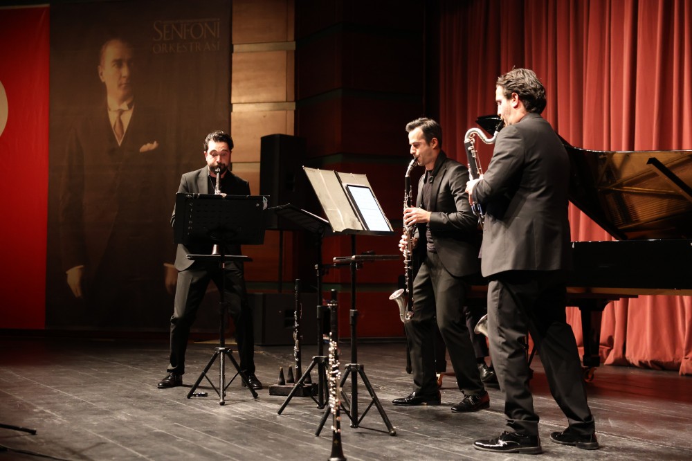 Eskişehir Büyükşehir Belediyesi’nin Caz ve Oda Günleri kapsamında gerçekleştirdiği konserler tüm hızıyla devam ediyor.Bu kapsamda sahne alan Anatolian Clarinet Connection, dinleyicilere teknik beceriyi ve duygusal derinliği bir arada sunan nitelikli bir konser deneyimi yaşattı. Yağızcan Keskin (Klarinet), Çağdaş Engin (Klarinet, Bassethorn), Fevzi Onur Ustabaş (Klarinet, Bas klarinet) ve İlter Vurucu’dan (Piyano) oluşan topluluk, müzikseverlere çok katmanlı ve etkileyici bir oda müziği deneyimi sundu.