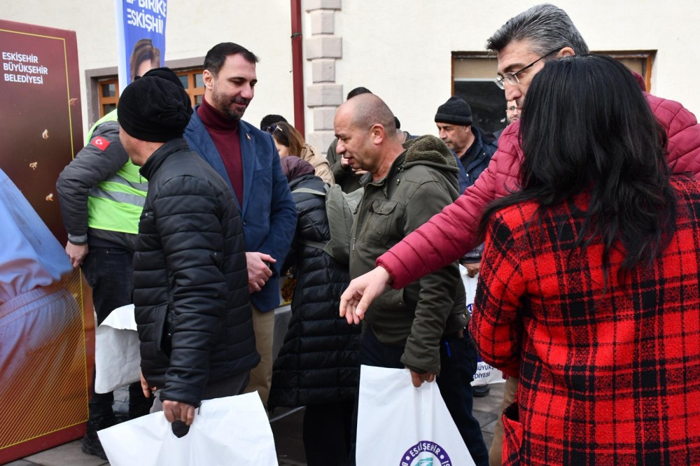 Bu kapsamda Günyüzü ilçesinde 4 üreticiye toplam 78 kg, Beylikova’da 14 üreticiye 100 kg, Çifteler’de ise 12 üreticiye 216 kg arı yemi desteği sağlandı. İlçelerde düzenlenen dağıtım törenleri, üreticilerin yoğun ilgisiyle gerçekleşti.