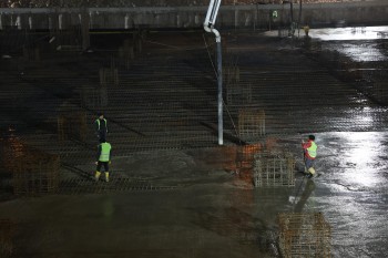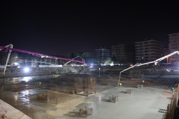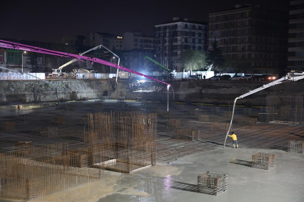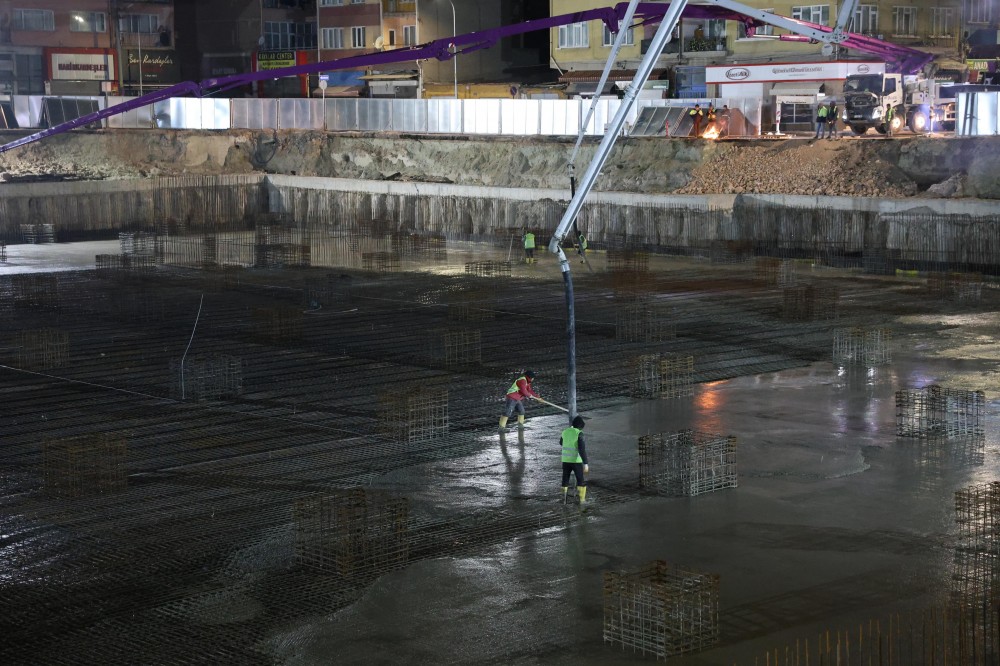 Gece yarısı başlayan beton dökümü kapsamında yaklaşık 5 bin metreküp beton dökülürken, çalışmaların gün boyunca devam edeceği ve beton döküm işleminin 17 Mart Salı sabahı tamamlanacağı belirtildi.