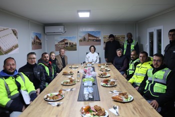 Başkan Ünlüce, incelemelerin ardından inşaat sahasında gece boyunca çalışan işçilerle bir araya gelerek sahur sofrasına misafir oldu. İşçilerle sohbet eden Ünlüce, emeklerinden dolayı tüm çalışanlara teşekkür ederek çalışmalarında kolaylıklar diledi.