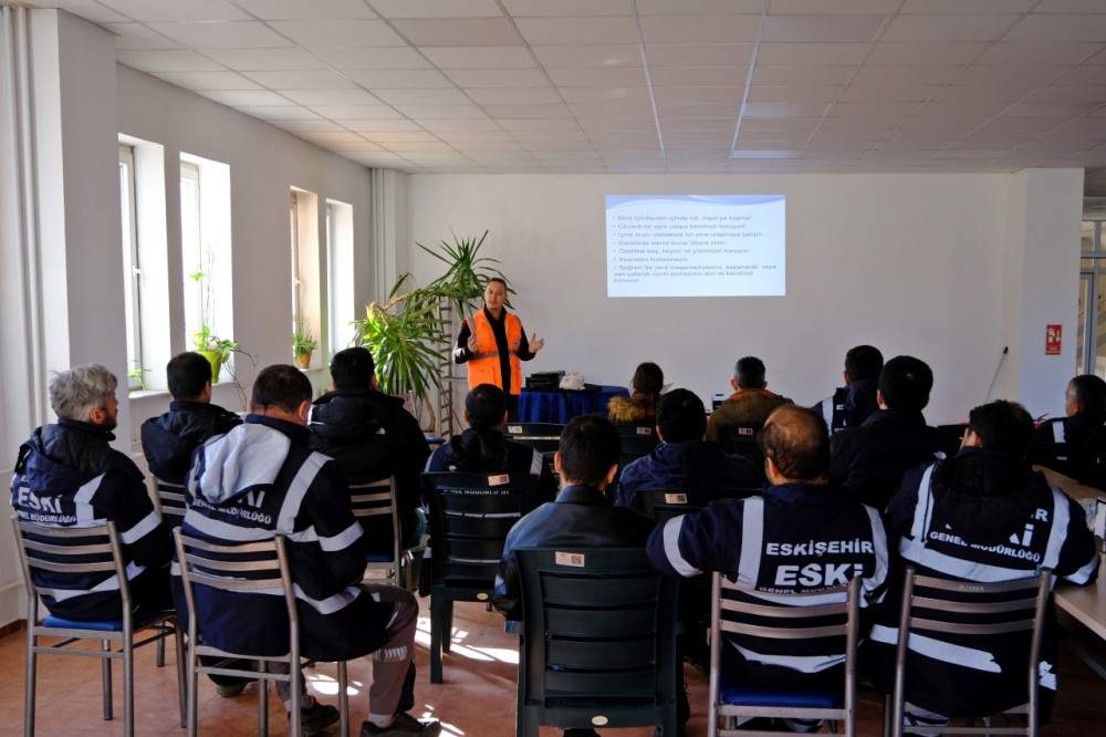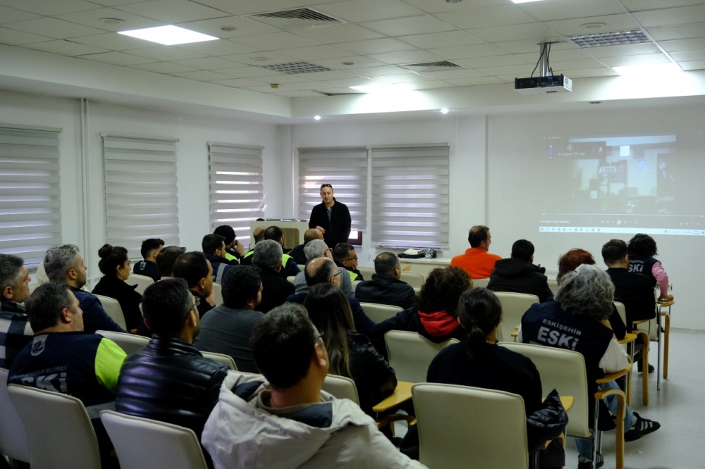 Eskişehir Büyükşehir Belediyesi İtfaiye Daire Başkanlığı ve ESKİ İş Sağlığı ve Güvenliği Şube Müdürlüğü iş birliğiyle düzenlenen program kapsamında, ESKİ personeline yönelik yangın, kurtarma ve afet müdahalesi konularında teorik ve uygulamalı eğitimler verildi.