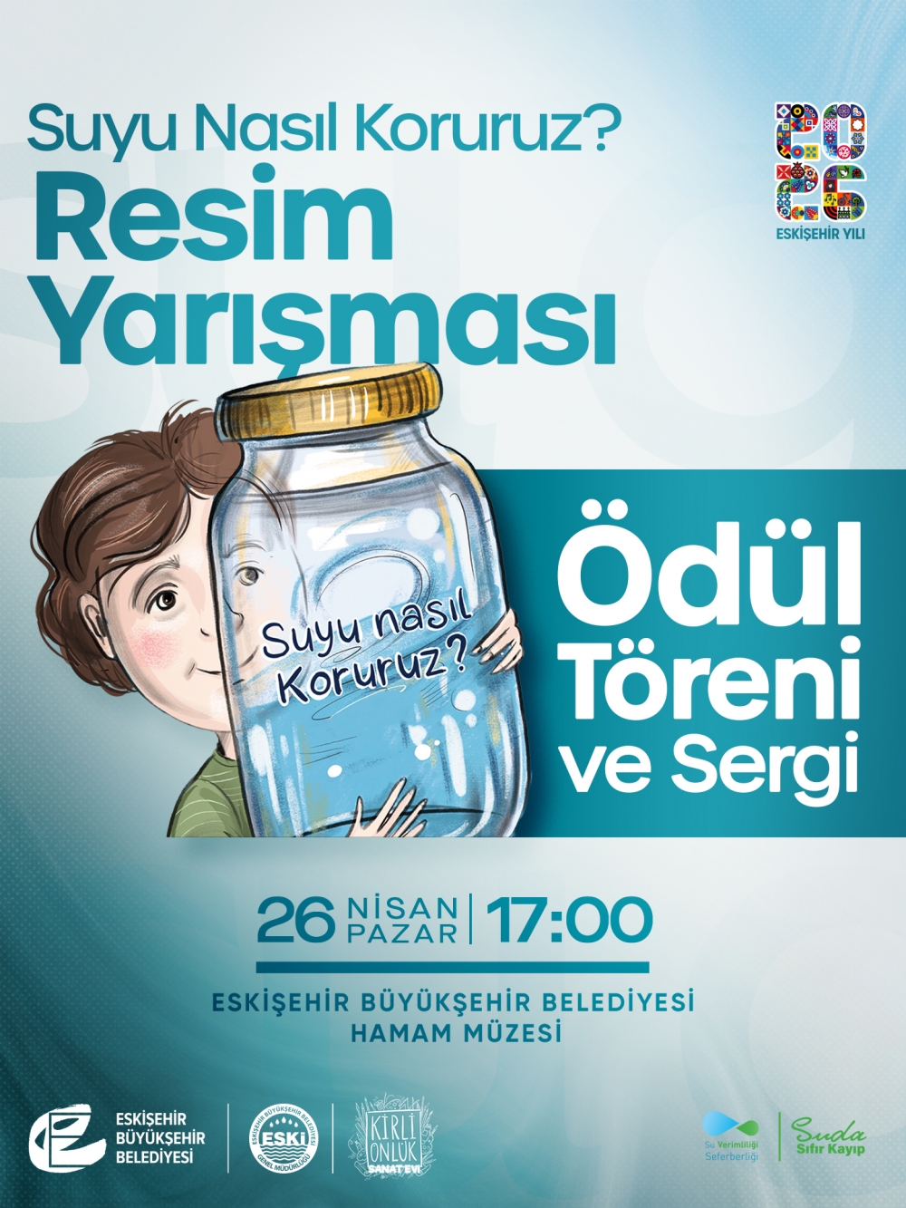 Eskişehir Büyükşehir Belediyesi Su ve Kanalizasyon İdaresi Genel Müdürlüğü (ESKİ) ile Kirli Önlük Sanat Evi iş birliğinde, su kaynaklarının korunmasına yönelik farkındalık oluşturmak amacıyla düzenlenen, ortaokul ve lise öğrencilerine yönelik “Suyu Nasıl Koruruz?” temalı Resim Yarışması sonuçlandı.