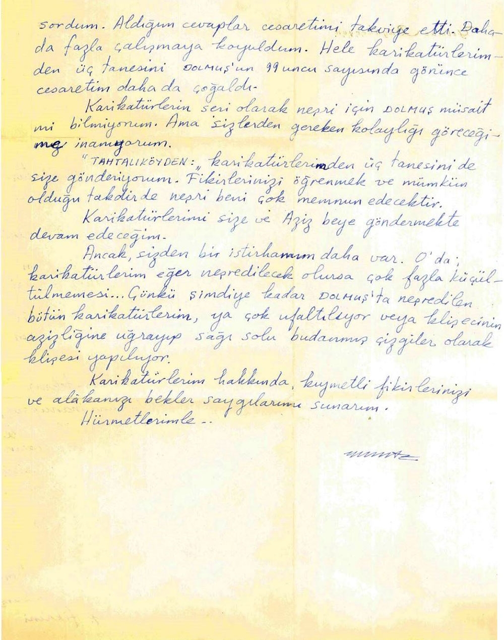 Turhan Selçuk’un orijinal karikatürlerini toplayan koleksiyoner Çağrı Çalışır’ın bir sahaftan aldığı çerçevesi yıpranmış karikatürün arkasından çıkan bir zarfın içinden çıkan 59 yıllık mektuptan yola çıkan #tarih Dergisi yazarı Caner Gürellier, mektubun sahibi Yılmaz Büyükerşen ile buluşarak, güzel ayrıntılar ve sürprizlerle karşılaştı.