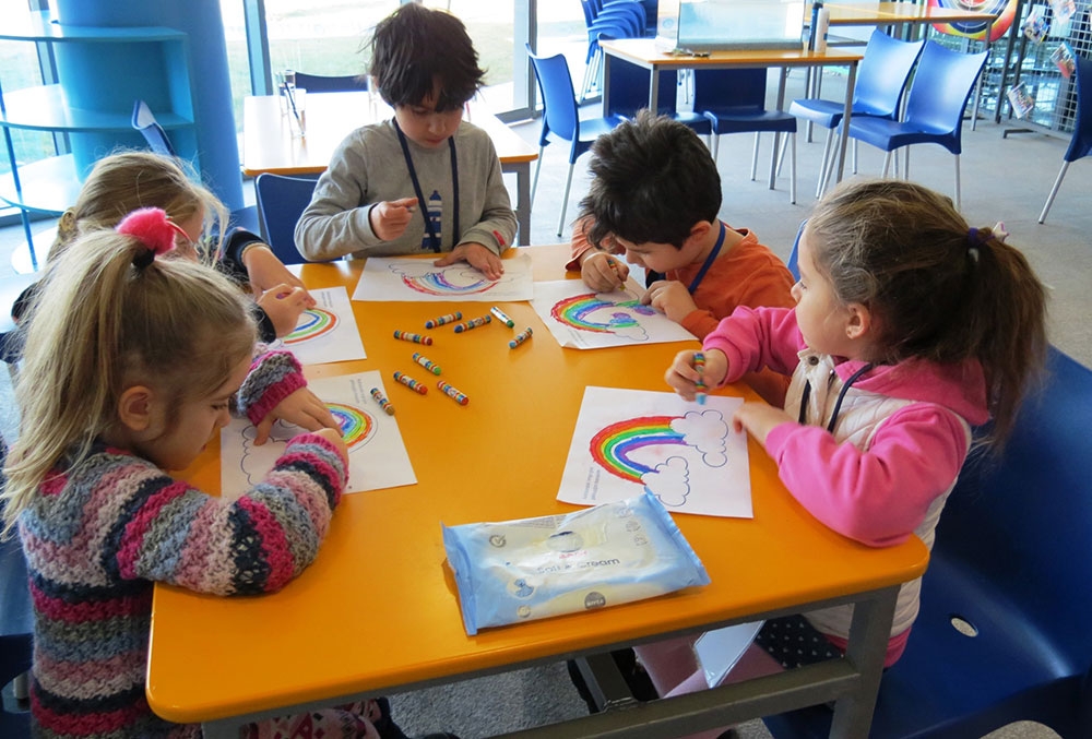 ‘Görünür Görünmez’ atölyesine katılan çocuklar ışığın kırılması, gök kuşağı oluşumu gibi günlük hayatta yaşadığımız olayların nasıl gerçekleştiğini deneyler yaparak öğrendiler.