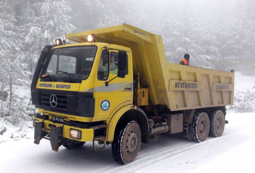 İlçelerin yüksek yerlerinde etkili olmaya başlayan kar yağışı ile birlikte teyakkuz durumuna geçen Büyükşehir Belediyesi ekipleri, yollarda tuzlama çalışmalarına başladı. Mihalıççık, Seyitgazi, Alpu ilçelerinin yüksek kesimlerinde ve Tepebaşı’na bağlı Hekimdağ ve Sulukaraağaç mahallelerinde etkisini gösteren kar yağışı sonrası ekipler kar kürüme ve tuzlama çalışmaları gerçekleştirerek kırsal yolları sürücüler için emniyetli hale getiriyor.