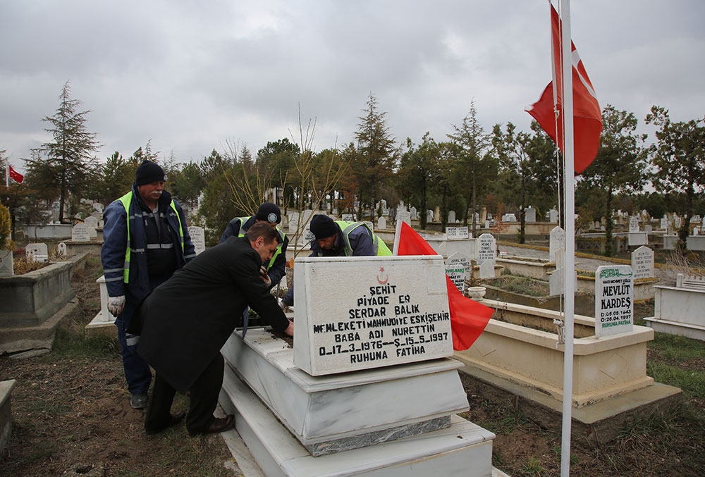 Vişnelik Hava Şehitliğinde 301, Kanlıpınar Şehitliğinde 44, Asri Mezarlıkta 45, Esentepe Mezarlığında 19, Odunpazarı Mezarlığında 5, Zincirlikuyu Mezarlığında 4, Alpu İlçesi ve mahallelerinde 10, Beylikova İlçesi ve mahallelerinde 14, Han İlçesi ve mahallelerinde 9, Günyüzü İlçesi ve mahallelerinde 6, Sivrihisar İlçesi ve mahallelerinde 24, Mahmudiye İlçesi ve mahallelerinde 9, Çifteler İlçesi ve mahallelerinde 16, Seyitgazi İlçesi ve mahallelerinde 10, Mihalıççık İlçesi ve mahallelerinde 83, Sarıcakaya İlçesi ve mahallelerinde 3, İnönü İlçesi ve mahallelerinde 3, Mihalgazi İlçesi ve mahallelerinde 3 ve Tepebaşı İlçesi Uludere, Satılmışoğlu, Taycılar, Y.Söğütönü, Emirler ve Kızılcaören Mahallelerinde toplam 8, Odunpazarı İlçesi Karapazar, Kıravdan, Sultandere, Türkmentokat, Uluçayır, Karaçay, Doğankaya ve Y.Çağlan Mahallelerinde toplam 9 adet şehit mezarı bütün mahalle muhtarları ve şehit yakınlarıyla görüşülerek tek tek tespit edilerek her birinin bakımı yapılıp çiçeklendirmesi tamamlandı.