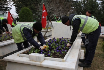 Büyükşehir Belediyesi 18 Mart Şehitleri Anma Günü ve Çanakkale Zaferi’nin yıldönümü öncesi, şehitlerimize olan minnet duygularımızı bu yılda çiçeklerle ve mezarlık bakımları ile yineliyor. Büyükşehir Belediyesi tarafından ilimizde bulunan şehitlikler çiçek bahçesine dönüştürülüyor.