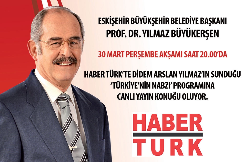 Eskişehir Büyükşehir Belediye Başkanı Prof. Dr. Yılmaz Büyükerşen 30 Mart Perşembe akşamı saat 20.00’da Haber Türk’ün canlı yayın konuğu olacak.