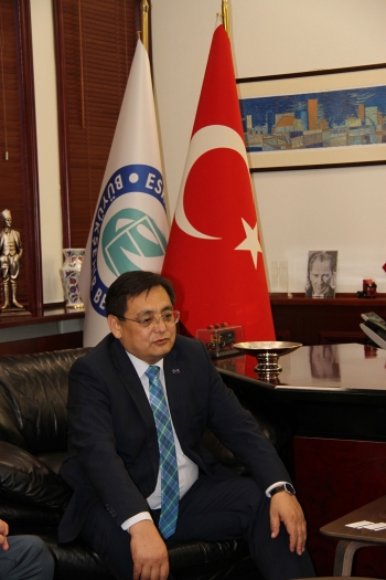Türk Dili Konuşan Ülkeler Parlamenter Asamblesi (TÜRKPA) Genel Sekreteri Jandos Asanov Büyükşehir Belediye Başkanı Büyükerşen’i ziyaretinde, ilk kez geldiği Eskişehir’e hayran kaldığını belirterek, “Çok güzel, temiz ve yeşil bir şehir. Eskişehir sadece Türk Dünyası’nın değil, tüm dünyanın tanıdığı ve örnek aldığı bir kent” dedi.