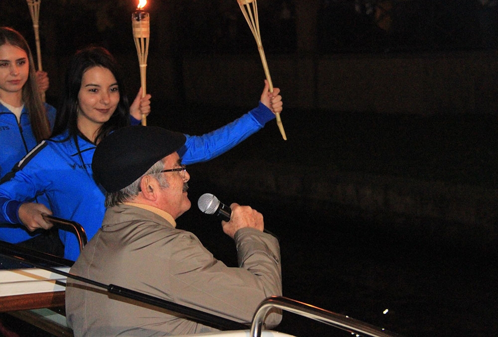 Prof. Dr. Yılmaz Büyükerşen’in de katıldığı Fener Alayı için saatler öncesinden Porsuk Çayı üzerindeki köprülerde ve kıyılarda yerini alan Cumhuriyet Sevdalıları marşlar ile Cumhuriyet Bayramını büyük bir coşku ile kutladı. Bot üzerinden vatandaşlara seslenen Yılmaz Büyükerşen “Atamızın izinden onun değerlerine sahip çıkan tüm hemşerilerimi kucaklıyorum. En büyük bayramımız Cumhuriyet Bayramı kutlu olsun. Cumhuriyet kenti Eskişehir ile gurur duyuyorum” dedi.