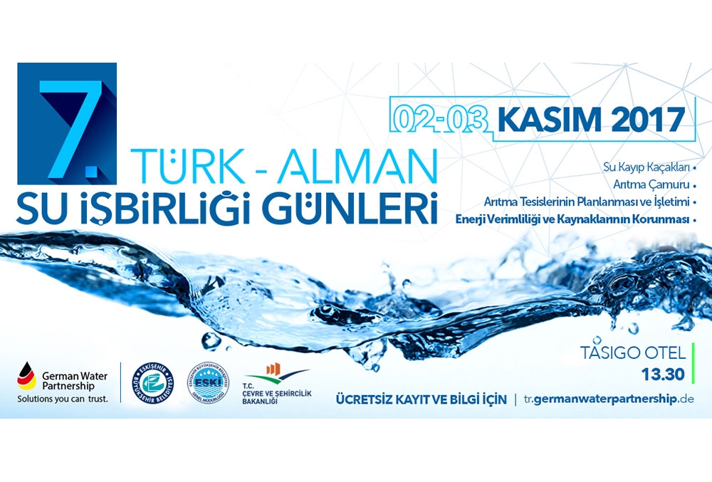 Su ve atıksu sektörünü buluşturan Türk-Alman Su İşbirliği Günlerinin yedincisi 02-03 Kasım 2017 tarihlerinde Eskişehir’de yapılacak. Büyükşehir Belediyesi ve German Water Partnership’in işbirliğinde gerçekleşecek olan 7.Türk-Alman Su İşbirliği Günleri’ne Çevre ve Şehircilik Bakanlığı da destek veriyor.