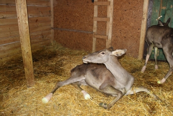 Hayvanat Bahçesine bağlı Fidanlık Üretim ve Rehabilitasyon Merkezindeki barınakta Büyükşehir Belediyesi veterinerleri gösterdikleri yoğun çabayla kızıl geyik ve yavrusun bir an önce doğal ortamlarına kavuşturmak istiyorlar. Kanala düştükten sonra çıkmak için verdikleri mücadele sırasında geyiklerin ayaklarında derin yaralar, tırnaklarında doku kayıplı büyük yaralar oluştu.