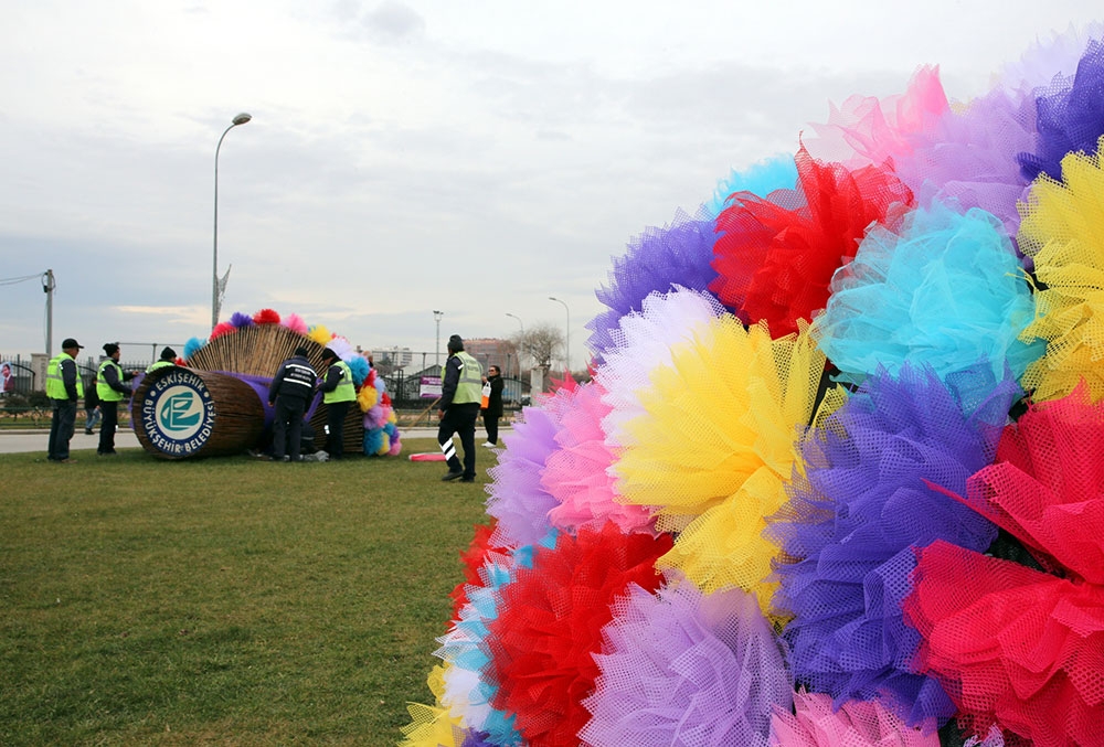 Park ve Bahçeler Dairesi Başkanlığı peyzaj mühendislerinin tasarladığı 448 adet çiçek,112 metre çeşitli renklerdeki tergal kumaştan hazırlandı. Soğuk havalarda boş kalan meydandaki dev buketler ekipler tarafından önce temizlendi. 448 solmayan çiçek birer birer buketlere yerleştirilerek düzenlendi. Çalışmalar sonucu İsmet İnönü 1 Caddesindeki meydan kısa sürede renkli bir görüntüyle güzelleşti.
