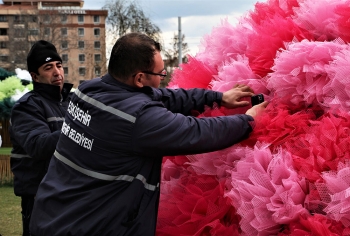 Park ve Bahçeler Dairesi Başkanlığı peyzaj mühendislerinin tasarladığı 448 adet çiçek,112 metre çeşitli renklerdeki tergal kumaştan hazırlandı. Soğuk havalarda boş kalan meydandaki dev buketler ekipler tarafından önce temizlendi. Temizlenen buketlere 448 solmayan çiçek birer birer yerleştirilerek düzenlendi. Çalışmalar sonucu İsmet İnönü 1 Caddesindeki meydan kısa sürede renkli bir görüntüyle güzelleşti.
