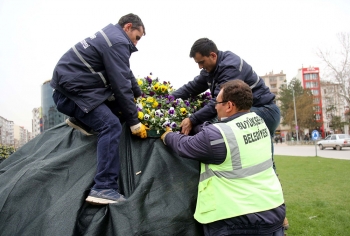 Büyükşehir Belediyesi ekipleri hava sıcaklıklarının yükselmesiyle birlikte kavşakları çiçeklerle süslemeye başladı. İsmet İnönü Bulvarı’nda bulunan meydandaki buket motifleri çiçeklerle süslenirken, diğer kavşaklarda da çiçeklendirme hazırlıkları başladı.
