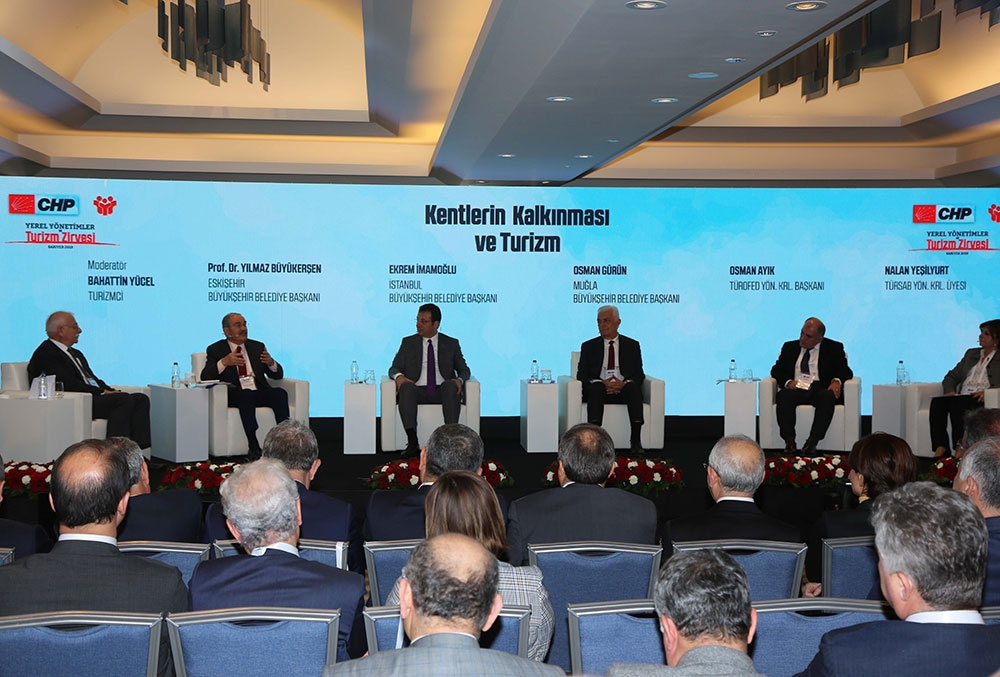 Cumhuriyet Halk Partisi Genel Başkanı Kemal Kılıçdaroğlu’nun konuşmasıyla başlayan ve gün boyu 4 oturum ile devam eden Turizm Zirvesi’nin ilk oturumunda ‘Kentlerin Kalkınması ve Turizm’ konusu ele alındı. Cumhuriyet Halk Partili belediyelerce yönetilen kentlerin Türkiye’de turizm payının %90’ına hakim olduğunu belirten Kemal Kılıçdaroğlu, kentlerin turizmden daha fazla gelir elde etmesi amacıyla böyle bir etkinlik düzenlediklerini ifade etti. Eskişehir’in son yıllarda Bursa’dan daha fazla turist çeken bir kent haline geldiğini belirten Kılıçdaroğlu, başarılı şehircilik çalışmalarının o kentin turizm gelirlerini büyük oranda arttırdığına dikkat çekti.