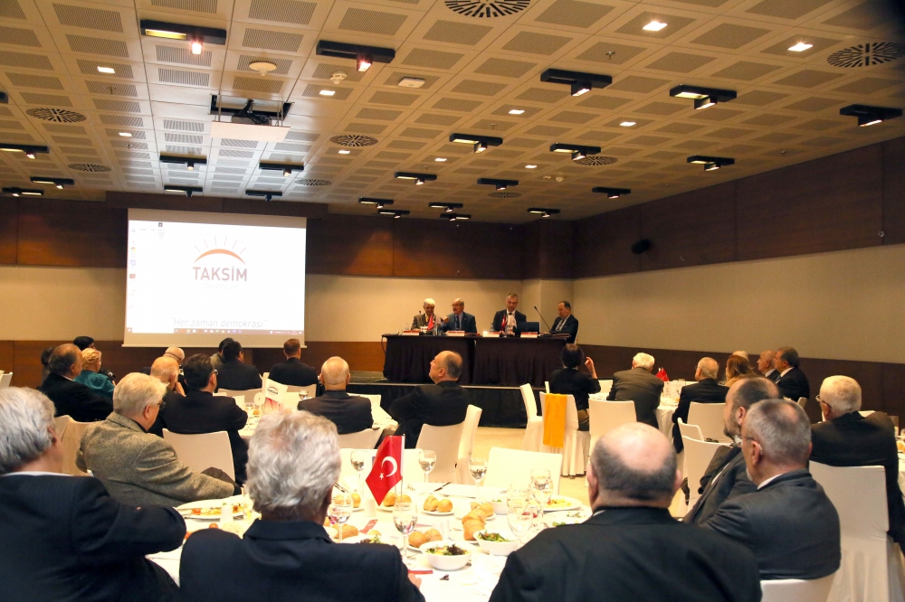 1977 yılından beri düzenlenen ve uygar ortamı demokratik hoşgörü ve işbirliği gelişiminde Türk siyasi tarihine önemli katkılar sağlayan Taksim Toplantıları’nın 181. Buluşması İstanbul’da gerçekleştirildi. Turgut Özal, İsmet İnönü, Süleyman Demirel gibi siyasete damga vurmuş isimlerin de katıldığı toplantıların 181’incisine Eskişehir Büyükşehir Belediye Başkanı Yılmaz Büyükerşen onur konuşmacısı olarak davet edildi. CHP Parti Meclisi Üyesi Gaye Usluer’in de katıldığı toplantıda Prof. Dr. A. Vefik Alp ‘Kanal İstanbul Projesinin Kent ve Çevreye Etkileri, Tümamiral Cem Gürdemir ‘Kanal İstanbul’un Siyasi Etkileri’ ile ilgili sunum gerçekleştirirken, Başkan Büyükerşen ise ‘Yerel Yönetimde Eskişehir Modeli’ başlıklı bir sunum yaptı. 1999 yılından bugüne Eskişehir’de gerçekleştirdikleri şehircilik çalışmalarını anlatan Başkan Büyükerşen, konuşması sonunda salonu dolduranlar tarafından ayakta alkışlandı.