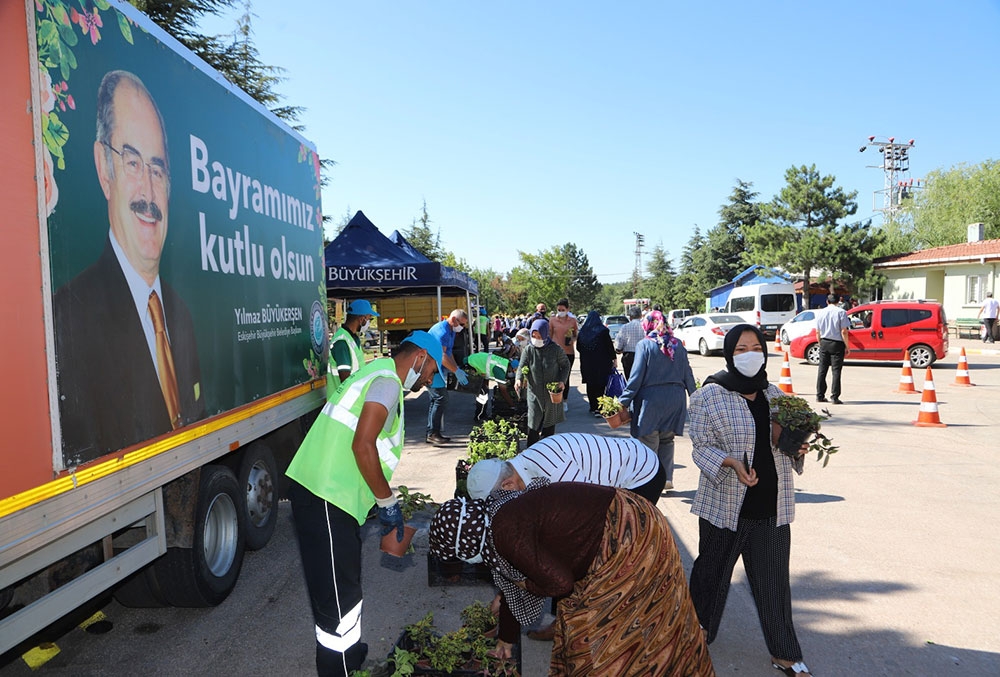 Kendi seralarında özenle yetiştirdiği rengârenk çiçekler ile cadde ve bulvarları donatan Büyükşehir Belediyesi, özel günlerde de vatandaşları unutmuyor. Büyükşehir Belediyesi geleneksel hale getirdiği ve yıllardır devam eden uygulamayı bu yıl da sürdürerek arife günü kent merkezindeki mezarlıklarda yakınlarını ziyarete gelen vatandaşlara rengarenk on binlerce çiçeği ücretsiz olarak dağıttı. Mezarlık giriş ve çıkışlarına kurulan stantlarda vatandaşlara lokma da ikram eden Büyükşehir Belediyesi, mezarlık içerisinde sosyal mesafe ve maske konusunda da anonslarla vatandaşları uyardı.