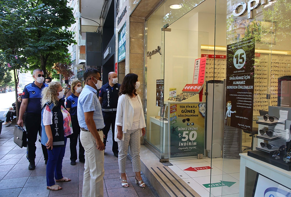 Korona Virüs ile Mücadele Eylem Planını kararlılıkla uygulamaya devam eden Eskişehir Büyükşehir Belediyesi, İçişleri Bakanlığı tarafından Türkiye genelinde düzenlenen denetimlere de katılarak maske ve mesafe konusunda vatandaşları uyardı. Yoğunluğun yaşandığı caddeler başta olmak üzere pazar alanları ve birçok noktada maskesi olmayan vatandaşları maskelerini takmaları konusunda uyaran zabıta ekiplerinin denetimine Büyükşehir Belediyesi Genel Sekreteri Ayşe Ünlüce de katıldı.