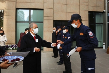 Ege Denizi açıklarında yaşanan ve İzmir başta olmak üzere birçok kentte hissedilen deprem sonrası, tüm Türkiye İzmir'in yaralarını sararken, Eskişehir Büyükşehir Belediyesi İtfaiye ekipleri görevlerini tamamlamalarının ardından Büyükşehir Belediye Başkanı Yılmaz Büyükerşen ile bir araya geldiler. Eskişehir halkının kendileriyle gurur duyduğunu ifade eden Başkan Büyükerşen, itfaiye ekibine teşekkür belgeleri ile hediyelerini takdim etti.