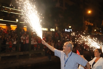 Fener alayına Eskişehir Büyükşehir Belediye Başkanı Prof. Dr. Yılmaz Büyükerşen, CHP Eskişehir Milletvekili Jale Nur Süllü, Tepebaşı Belediye Başkanı Dt. Ahmet Ataç katılarak botlardan vatandaşları selamladı. Fener alayında Eskişehir’in cumhuriyete ve onun değerlerine sahip çıkan bir kent olduğunu vurgulayan Büyükşehir Belediye Başkanı Yılmaz Büyükerşen, bu büyük zaferleri bayramlarla kutlamamızı sağlayan başta Mustafa Kemal Atatürk olmak üzere tüm şehitlerimize minnet ve şükranlarını sundu. Başkan Ataç ise, ömrünüz boyunca sonsuza kadar bu bayramların kullanmasını ve cumhuriyetin sonsuz olmasını diledi.