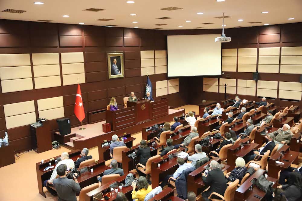 Tepebaşı Belediyesi Meclis Üyesi ve Eskişehir Muhacir Dernekleri Federasyonu Başkanı Seyfettin Çalışkan ise Büyükşehir Belediye Başkanı Yılmaz Büyükerşen’e çalışmaları için teşekkür plaketi takdim etti.