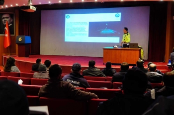 Şehiriçi yolların yapım bakım ve onarımlarında trafik işaretleme standarları konulu hizmet içi eğitime, Eskişehir Büyükşehir Belediyesi Su ve Kanalizasyon İdaresi Genel Müdürlüğü, Park ve Bahçeler Dairesi, Yol Yapım Bakım ve Onarım Dairesi, Ulaşım Dairesi personeli katıldı. Taşbaşı Kültür Merkezi Kırmızı Salonda verilen eğitimde hem çalışanların hem de sürücülerin güvenliği için yapılacak uygulamaları anlatan polis memurları, çalışma yapılan bölgelerde sürücüleri uyarmak için mutlaka uyarı levhası, trafik işaret ve işaretçilerinin kullanılması gerektiğini vurguladı.