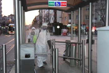 Eskişehir Büyükşehir Belediyesi her gün binlerce yolcunun taşındığı tramvaylarda salgın hastalık riskine karşı dezenfeksiyon ve sterilizasyon çalışmalarını aralıksız sürdürüyor. Araç içi ve dışı rutin temizliklerin yanı sıra Covid-19’a karşı koruma ve kontrol amacıyla Sağlık Bakanlığı ve United States Environmental Protection Agency (EPA) onaylı ithal biyosidal ürünlerle de araçlar detaylı olarak dezenfekte ediliyor.