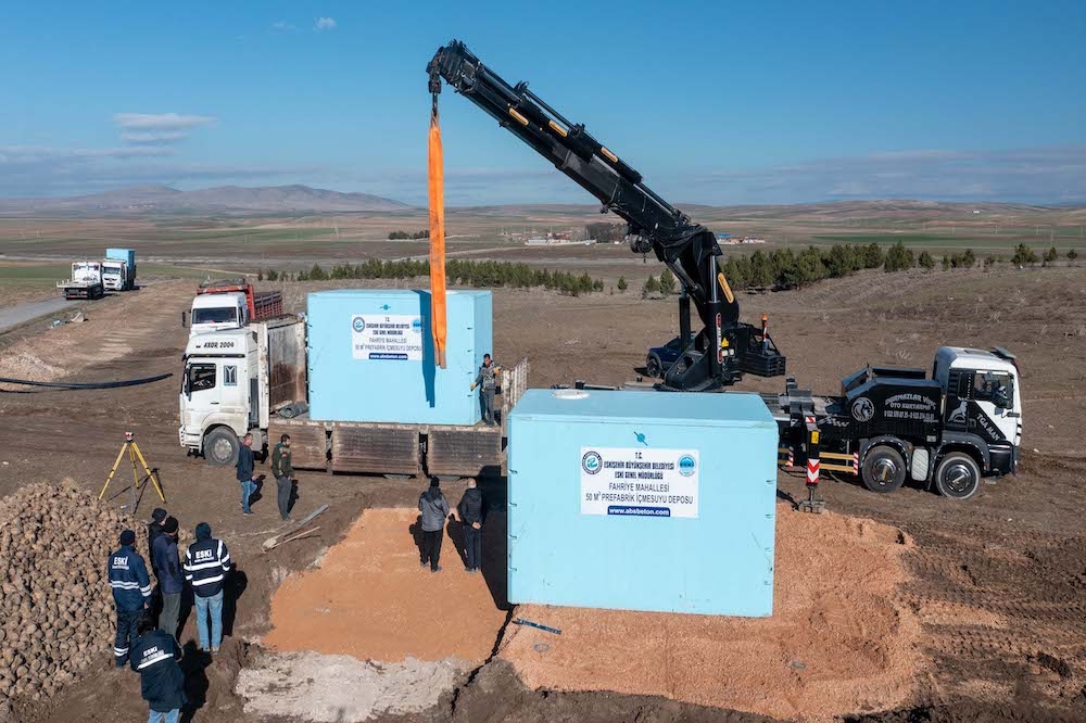 Gerçekleştirilen sondaj çalışması ile Mahmudiye ilçesi Fahriye Mahallesi’nde yaşanılan içme ve kullanma suyu sorununun önüne geçen ESKİ ekipleri, yenilenme ihtiyacı olan şebeke ve abone hatları ile içme suyu deposunun yerine de 2 adet, toplamda 50 tonluk prefabrik modüler içme suyu deposunu mahallelinin kullanımına sundu.