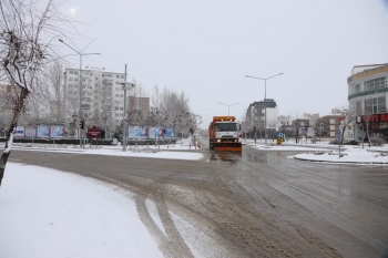 Ekipler kent genelinde etkisini gösteren kar yağışı ile birlikte ana caddeler, hastane acil giriş-çıkışları, otobüs güzergâhları başta olmak üzere 24 saat kesintisiz olarak çalışmaya devam edecek.