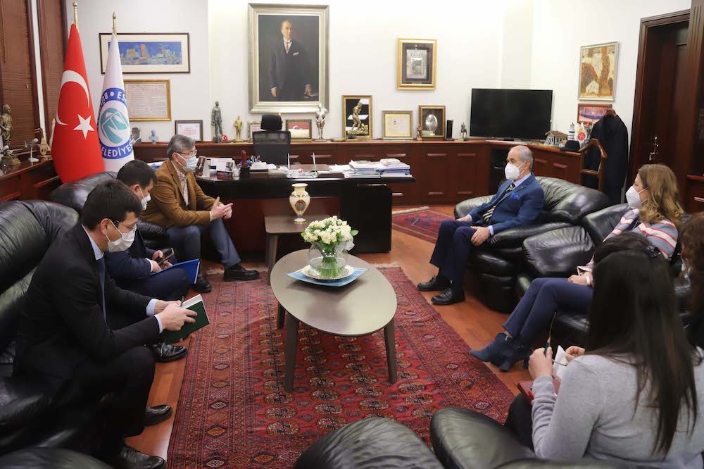 Çeşitli temaslarda bulunmak için Eskişehir’e gelen Kazakistan Ankara Büyükelçisi Abzal Saparbekuly ve beraberindeki heyet, Eskişehir Büyükşehir Belediye Başkanı Yılmaz Büyükerşen’i ziyaret etti.