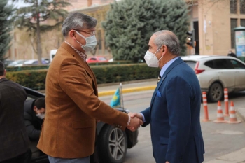 Büyükşehir Belediye Başkanı Yılmaz Büyükerşen, Kazakistan Büyükelçisi Abzal Saparbekuly ve beraberindeki büyükelçilik temsilcilerini makamında ağırladı. Ziyarette Büyükşehir Belediyesi Genel Sekreteri Ayşe Ünlüce de hazır bulundu. Başkan Büyükerşen, “Kazakistan kök bağlarımız ile bağlı olduğumuz bir ülke. Dostluğumuz baki kalacak. Eskişehir iklimi ve tarımsal üretimi açısından Kazakistan’a çok benziyor. Birlikte birçok projeye imza atacağımıza inanıyorum” dedi.