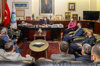 Nazik ziyaretleri dolayısıyla Prof. Dr. Serap Yazıcı ve beraberindekilere teşekkür eden Başkan Büyükerşen ise çalışmalarında Gelecek Partisi’ne başarı dileğinde bulundu.