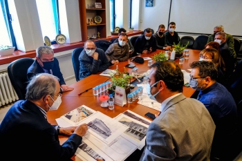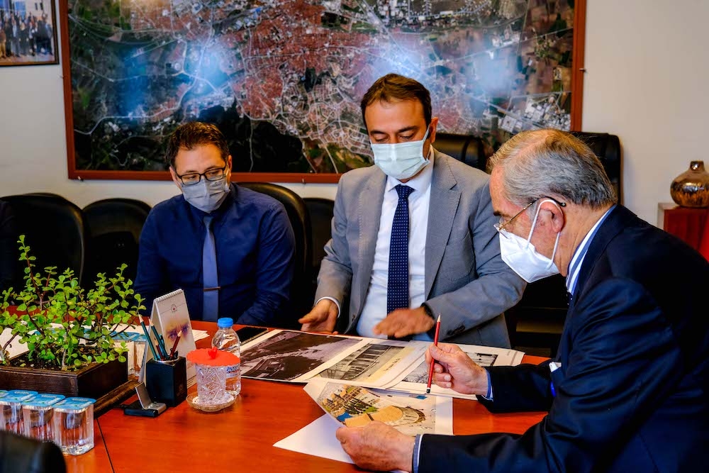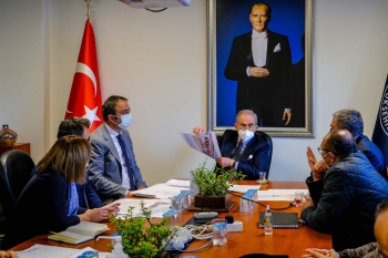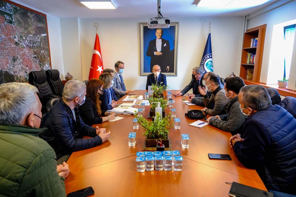 Büyükşehir Belediyesi Encümen Salonu’nda yapılan toplantıda, İş Bankası teknik ekibi, Büyükşehir Belediyesi bürokratları ve yüklenici firma DAD Mimarlık temsilcileri de yer aldı.