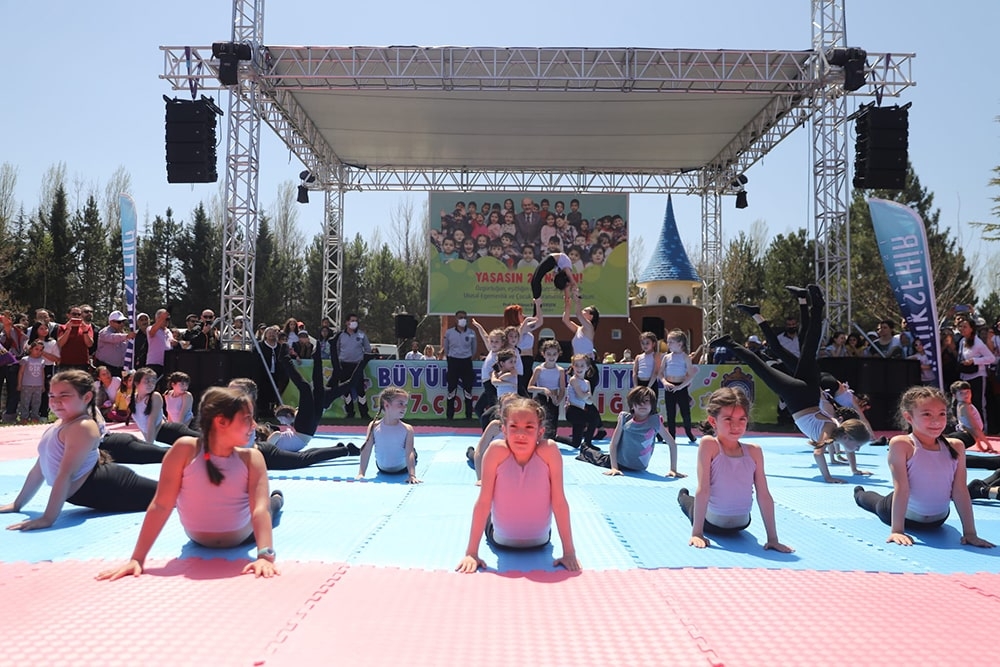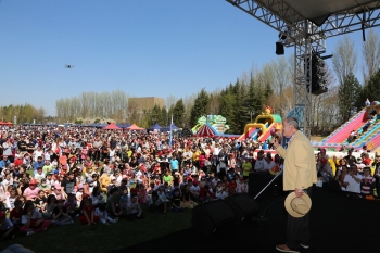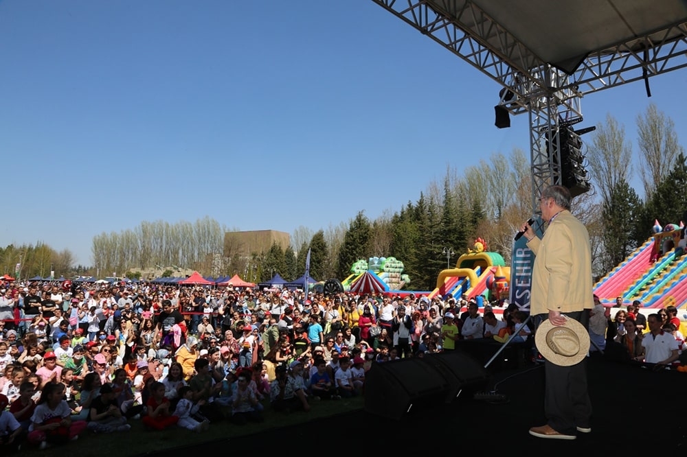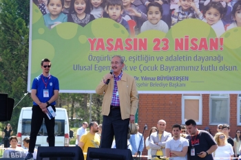 Şenlik alanında çocuklarla buluşan ve vatandaşların büyük ilgi gösterdiği Büyükşehir Belediye Başkanı Yılmaz Büyükerşen ise yaptığı konuşmada, “Çocuk şenliğimiz bir gelenek haline geldi. Sizler için yaptığımız parklar ve sizlerin sevgilisi olan Sazova Bilim Kültür ve Sanat Parkı’nda böylesi güzel bir bayram kutlaması yapmak ayrı bir güzellik. Bu parklarda sizlerin sesini duymak çok güzel. Çocuklar bu ülkeyi sizlere emanet eden Büyük Önder Mustafa Kemal Atatürk’ün izinden asla ayrılmayın. Onun gösterdiği aydınlık yol sizler için en güzel en özel kılavuzdur. Çocukları geleceğe hazırlayan kıymetli ailelere de sevgilerimi sunuyorum. Çocuklarımızın mutluluğu hepimizin mutluluğudur. Şenliğimize katılarak bu özel bayramı güzelleştiren, geleceğimiz yavrularımızın gözlerinden öpüyor, en büyük bayramlarını bir kez daha yürekten kutluyorum.” dedi.