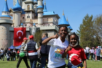 Tüm ilçelerden çocuklar ücretsiz otobüslerle 7. Çocuk Şenliği’ne getirilirken, Mülteci Destek Derneği de mülteci çocukları şenlikte buluşturdu.