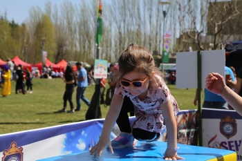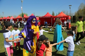 Sazova Bilim Kültür ve Sanat Parkı’nda 10.00 ile 17.00 saatleri arasında yapılan 7. Çocuk Şenliği’nde müzik ve sahne şovları, spor gösterileri, oyunlar ve yarışmaların yanı sıra atölye çalışmaları, müzik ve sahne şovları ile coşku zirveye çıktı.