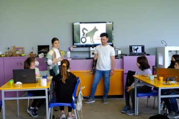 Üstün yetenekli öğrenciler atölyede makine mühendisi rolünde oyuncak üç bacaklı engelli bir köpeğin günlük yaşamını kolaylaştırmak için kodlama programında tasarladıkları protez bacağı, 3D yazıcıda basarak köpeğe taktılar.